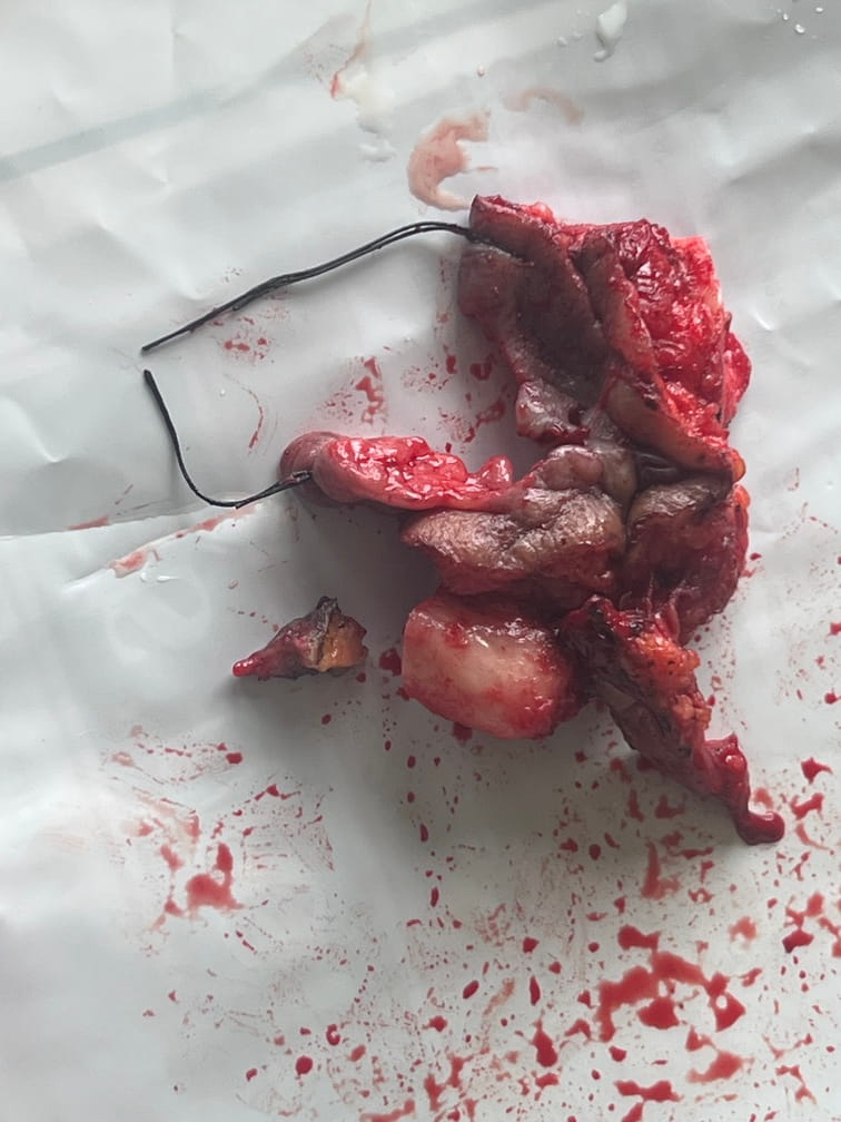 42 years old male suffering from left buccal mucosa carcinoma involving left cheek and mandible.ct scan shows multiple lymph nodes at level 1,2.left modified neck dissection with left hemimandibulectomy with left cheek growth with buccal mucosa growth excision with upper alveolectomy with bilobe PM flape .